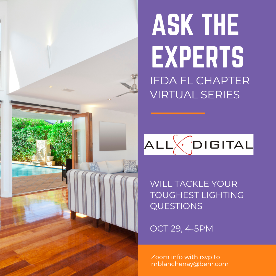 It’s another installation of our Ask the Expert series! Meet chapter sponsor ALL DIGITAL. Have you considered the value of a smart lighting system? Dimming & programming lighting scenes can enhance your interior design. Learn about this as well as how to reduce wall clutter with the use of keypads and a smart lighting system.