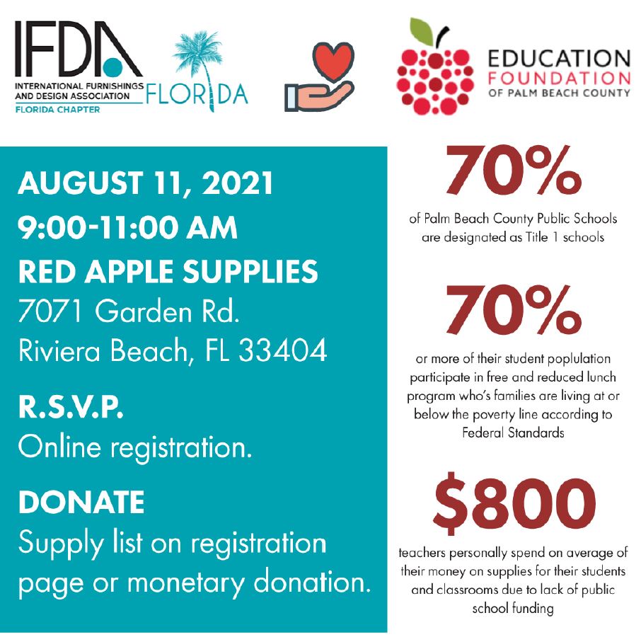 Or bring supplies from this list the day you volunteer or anytime you are in the area: https://educationfoundationpbc.org/sites/default/files/images/EF-Documents/RedApple/2021-2022%20School%20Supply%20Drive%20Supply%20List%20(2).pdf